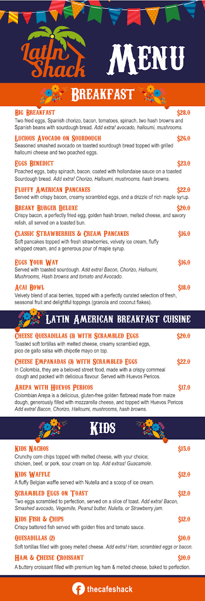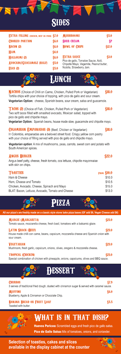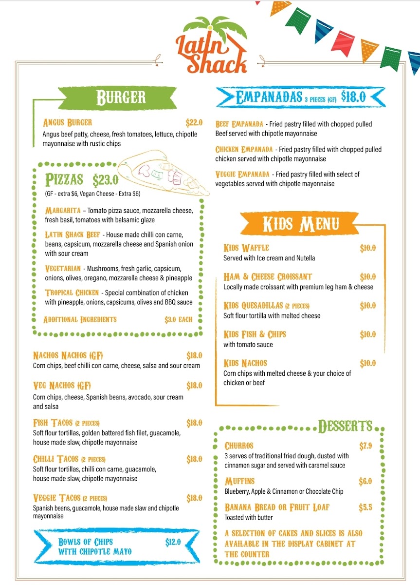 Welcome to Latin Shack Cafe, a delightful eatery nestled on Mount Glorious Rd in Samford Valley. Specializing in Latin American breakfast cuisine, this cozy cafe serves a range of delectable dishes that transport your taste buds to vibrant culinary landscapes. Highlights include the mouthwatering Cheese Quesadillas and Cheese Empanadas, both served delightfully with scrambled eggs to kickstart your day. For lunch, indulge in flavorful pizzas like the Latin Shack Beef or the Vegetarian option, as well as Fish Tacos and classic Nachos, perfect for sharing. The atmosphere is inviting, offering a tranquil retreat from the everyday hustle, while customer reviews highlight the delicious, quality food and welcoming service. Though some diners noted portion sizes could improve, the overall experience remains highly praised. Come savor the unique, vibrant offerings at Latin Shack Cafe — a Latin twist on your usual cafe fare!